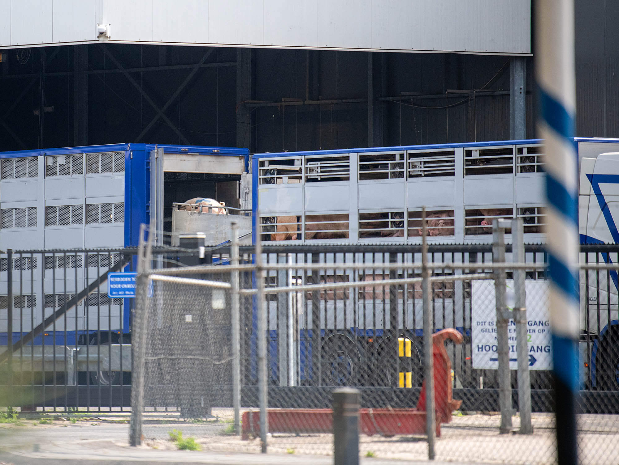 "Om 12.13 uur komt het voorste gedeelte er weer aanrijden, vol met varkens (ook allemaal hittestress) en de chauffeur koppelt het achterste gedeelte weer aan en rijdt richting slachthuis. Op dat moment kwam er nog een truck aan en die ging ook stilstaan. Ook hier hadden de dieren afschuwelijke hittestress (zichtbaar op de beelden). Die heeft ook lang gewacht. Ik ben daarna weggegaan maar om 13.45 reed ik er nog een keer langs en zag ik de truck, die ik 's morgens om 10.35 aan had zien komen en waarvan de aanhanger uren stil had gestaan, pas lossen. Ik schrok daar echt van.”