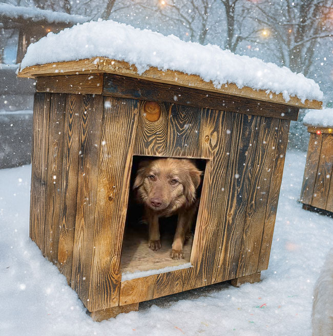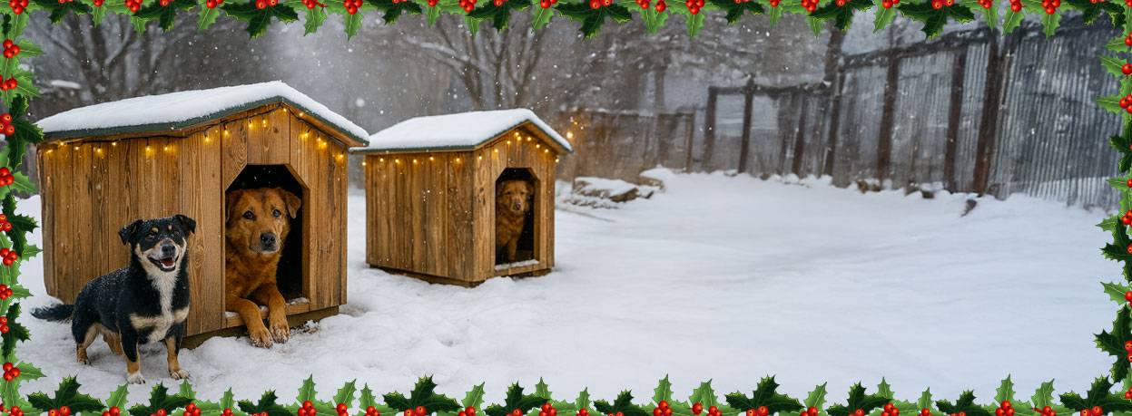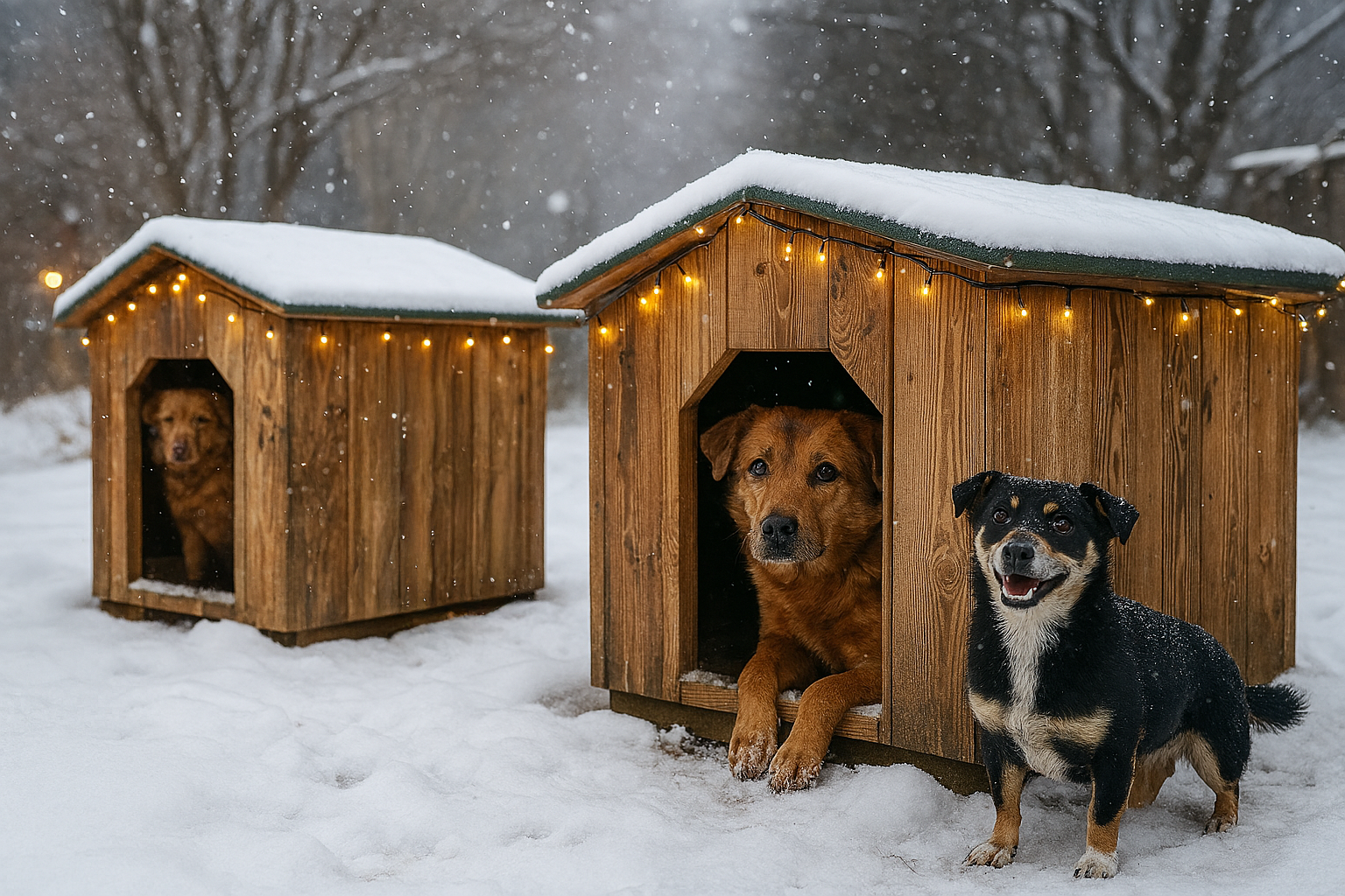 Word mede‑eigenaar van een hondenkerst‑huisje en geef achtergelaten dieren warmte en beschutting.